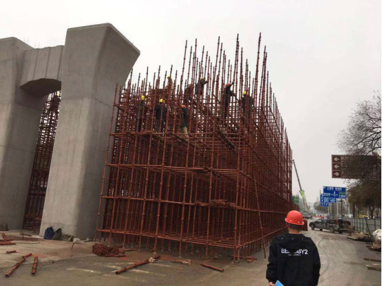 本項(xiàng)目全長1204.559m,其中橋梁全長684m,上跨武陵山大道節(jié)點(diǎn)274m,(4跨:55m+82m+82m+55m),為變高度全鋼箱梁;上跨天崇路節(jié)點(diǎn)橋梁110m(3跨:30m+50m+30m),為變高度預(yù)應(yīng)力混凝土連續(xù)梁;西側(cè)引橋長300m(10跨:10×30m),為等高度預(yù)應(yīng)力混凝土連續(xù)梁。子午橫斷面為50m,橋梁橫斷面為17.5m,該道路為城市主干道,雙向8車道,設(shè)計(jì)車速50km/h,橋梁使用年限100年,車行道采用瀝青混凝土路面,設(shè)計(jì)合理使用年限15年。