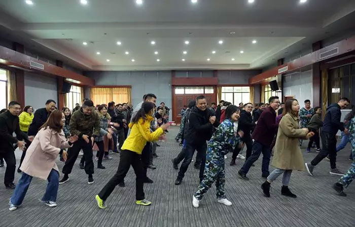 我們一齊圍成一個(gè)圈,互相拍拍肩、捶捶背,認(rèn)識(shí)熟悉,鼓勁加油。玩兒個(gè)“聽口令”的小游戲,被抓到的同志可是要上臺(tái)表演節(jié)目呢!