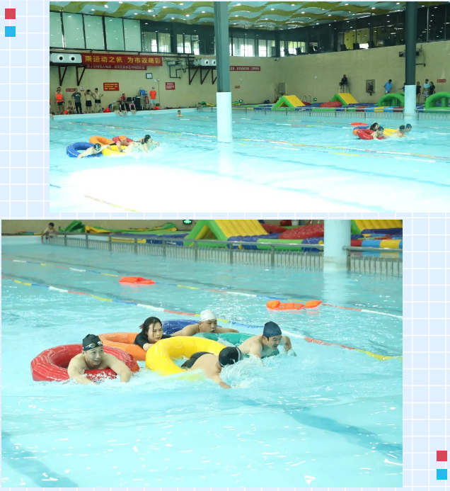 比賽項目分為“風雨同舟”、“爭分奪秒”、“奧運五環(huán)”、“勇往直前”四個環(huán)節(jié),選手們充分利用水上道具,你追我趕、頑強拼搏,將比賽的氣氛推向高潮,歡聲笑語不斷、氣氛熱鬧非凡。